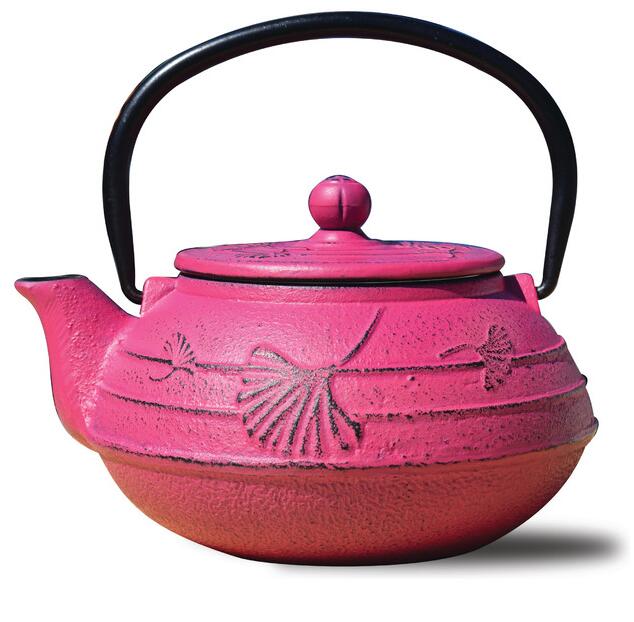 Fuchsia Cast Iron "Ginkgo" Teapot, 22 Oz.